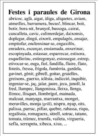 “Aviam”, “brunyol”, “enradera” o “fressa” són algunes de les 105 paraules de Girona que Esperança Boada ha recollit per confeccionar el disseny guanyador del Concurs del Disseny de Gots de Girona d’aquest 2018. El segon premi ha estat per Martí Raset, amb una il·lustració de dos amics que es troben en un carrer de Girona, i el tercer premi ha estat per Mireia Reixach, que ha dibuixat les sis lletres que formen part de la paraula “Girona” amb elements icònics de la ciutat, com el pont de les Peixateries Velles, les cases de l’Onyar o el campanar de Sant Feliu.